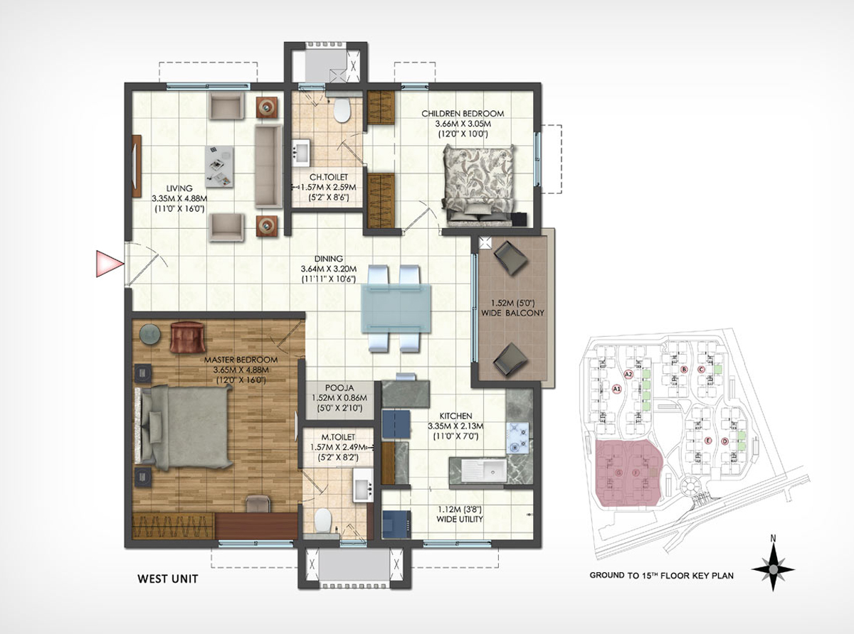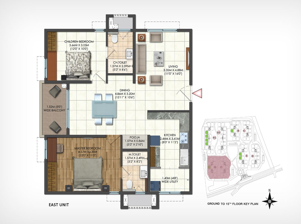 | 3 BHK | 1174 Sq.ft. (Carpet Area) | ₹ 1.75 Cr* |